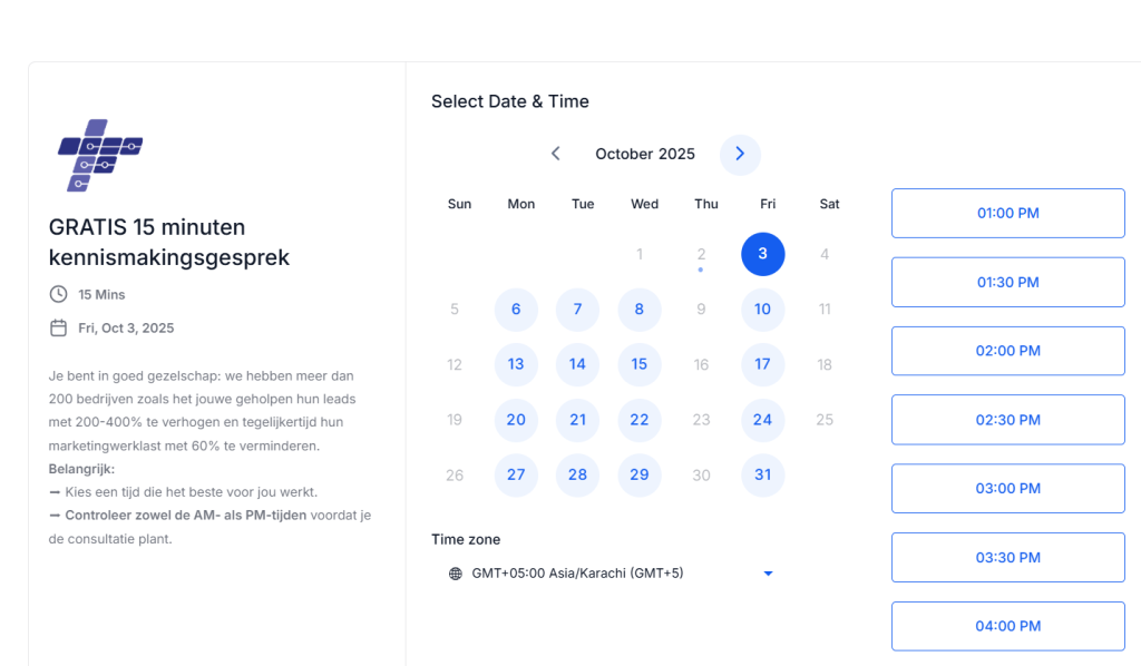 Zodra de lead gekwalificeerd is wordt er automatisch een afspraak gepland in je agenda.